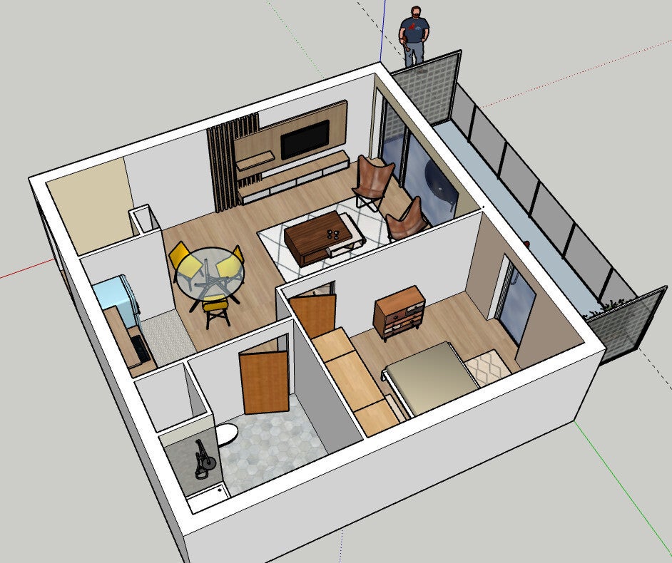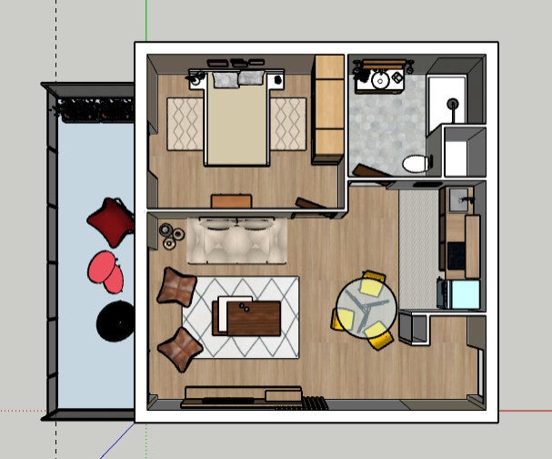 Cet appartement est un achat sur plan avec loi Pinel. Mon client voulait des visuels 3D présentant les possibilités d'aménagement de ce grand F2 pour des futurs locataires.